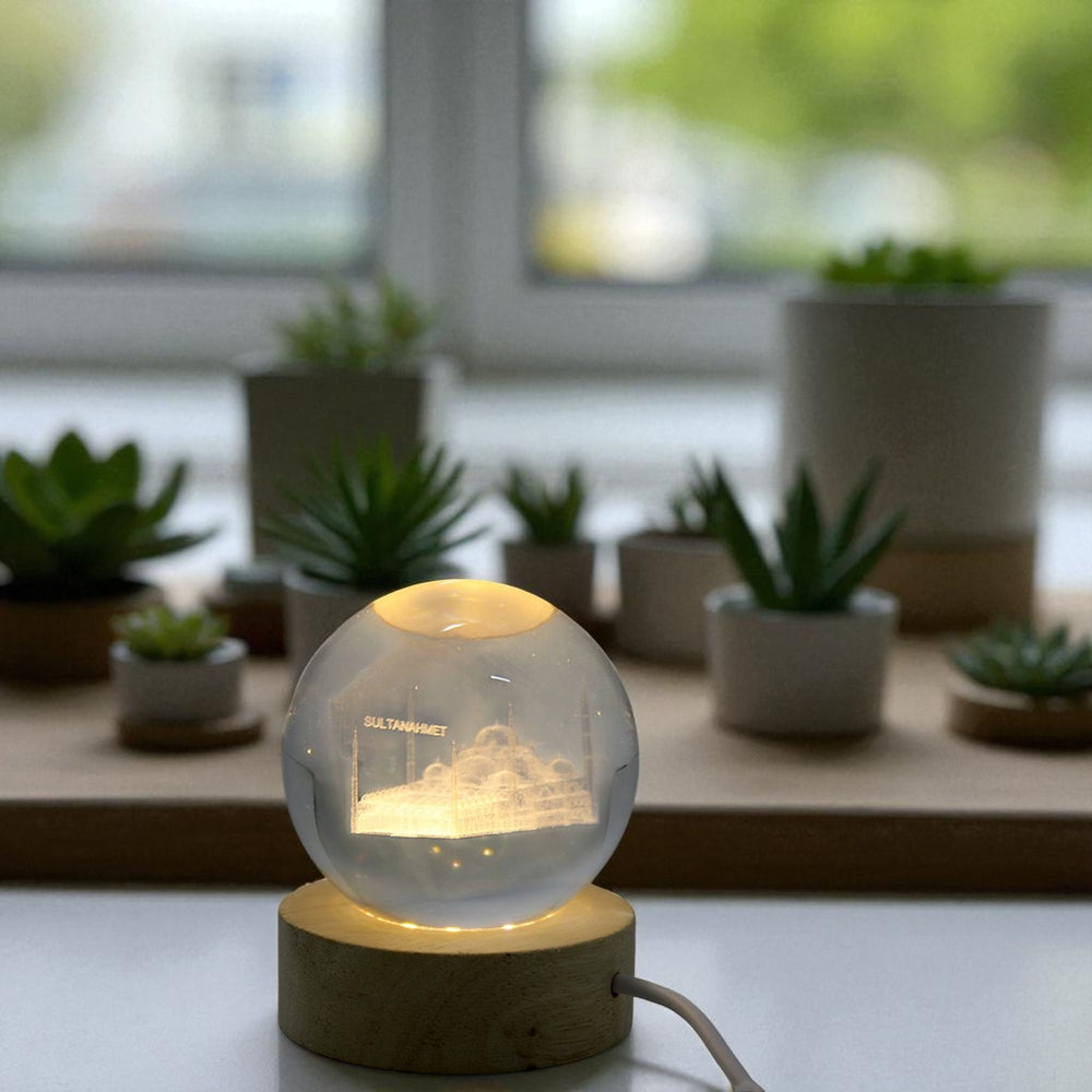 3D Sultanahmet Kristal Cam Küre Ahşap Soketli