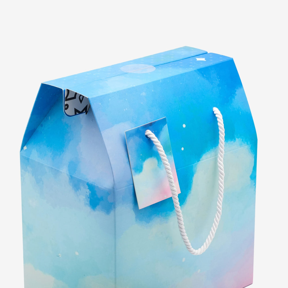 Pastel bulut desenleriyle huzurlu, minimal ve estetik bir görünüm sunan Blue Sky hediye kutusu; doğum günü, bebek hediyeleri, özel günler ve minimalist konseptli sunumlar için mükemmel bir tercihtir. Hediyenizi zarif bir şekilde öne çıkarır ve sunumunuza duygusal bir değer katar.